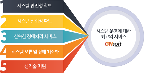 체계적인통합 유지보수 서비스로 시스템 성능관리, 장애관리, 네트워크관리, 데이터 백업관리, 소프트웨어 버전관리 등을 통해