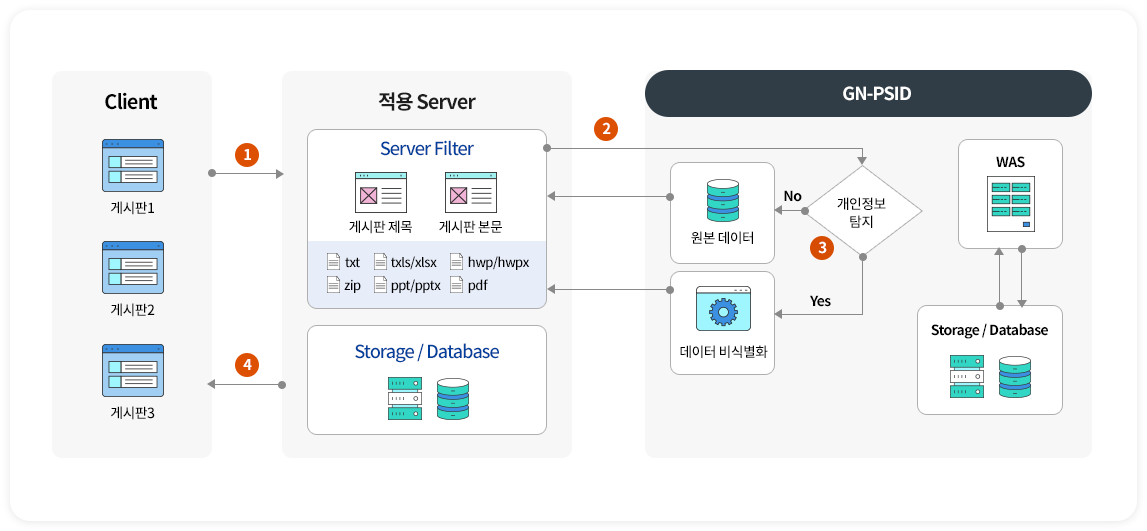 GN-PSID(지엔 개인정보 탐지 개발자도구 시스템)는 조직의 웹 게시와 문서 유통 과정에서 개인정보 유출을 선제적으로 차단하는 통합 보안 솔루션