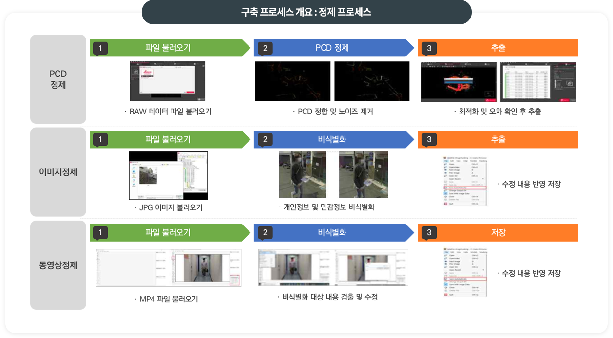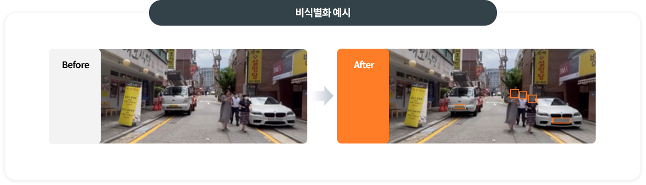이미지 및 동영상 데이터에 포함된 개인정보 객체를 대상으로 인공지능 객체 탐지 및 비식별화 기법을 적용하고, 실시간 처리 모델을 활용하여 영상 품질 저하 없는 개인정보 가명처리 솔루션