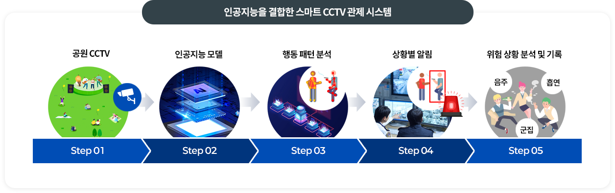 인공지능을 활용하여 CCTV영상 속 위험 요소들을 실시간으로 분석 및 탐지하고 자동으로 기록하며, 위험 상황에 맞게 대응할 수 있는 지능형 영상 분석 및 관제 시스템